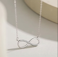 Elegantní 925 sterling stříbrný náhrdelník s horizontálním symbolem nekonečna zdobeným pavé zirkony; délka řetízku 40 + 5 cm, váha ≈ 1,90 g. Detailní informace